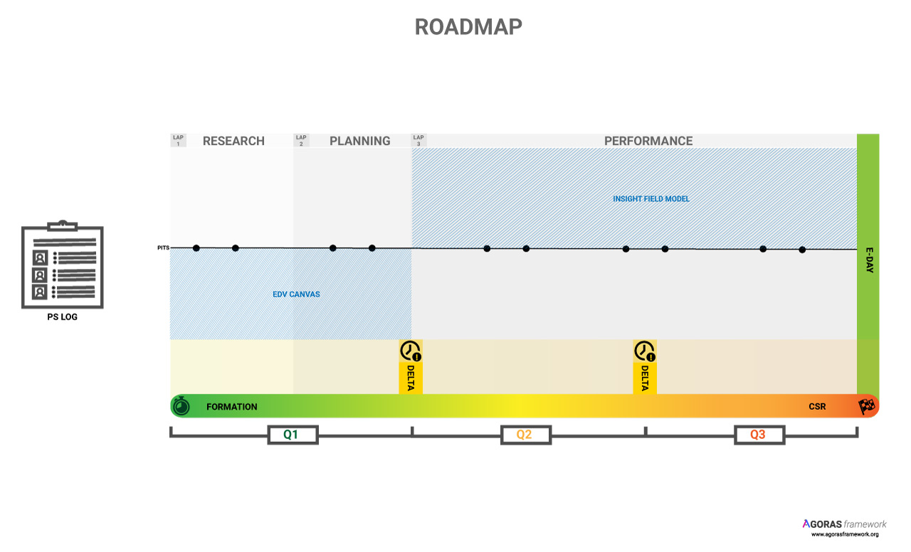 The Ágoras Framework Roadmap is a visual and objective guide that points out the paths to be taken for planning and a high-level perspective view for the delivery of campaign results. It is coordinated and managed by the CSL in parallel with the CM and any strategic change is subject to the criteria of both.